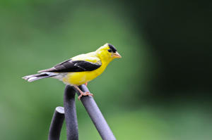 Provide their favorite foods like Nyjer (thistle) seed and sunflower hearts in specialized feeders (tube or sock) and grow native plants such as sunflowers, coneflowers, and thistles, allowing spent flowers to go to seed. Ensure fresh water in a birdbath and offer nearby cover like shrubs for safety, creating a welcoming habitat for these vibrant birds.